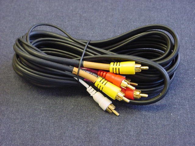 One video coaxial cable RG-59/U and two 24 AWG audio cables for left and right audio channels.